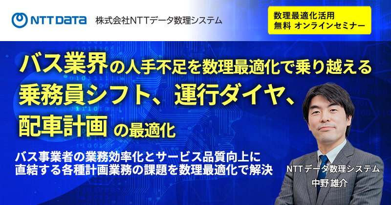 - バス業界の課題を数理最適化で乗り越える ~人手不足解消のための運行効率化・サービス改善セミナー~