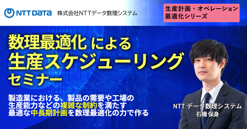 - 数理最適化による生産スケジューリングセミナー ~複雑な制約を満たす中長期計画を作るためのAI技術~